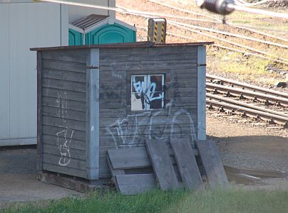 aber auch im Bahnhofsbereich sind auch heute noch immer Holzbaracken, im