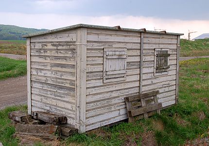 Meist sind die Rottenunterkünfte auf "Fundamenten" aus Eisenbahnschwellen