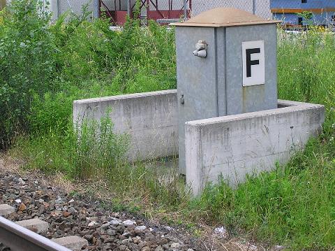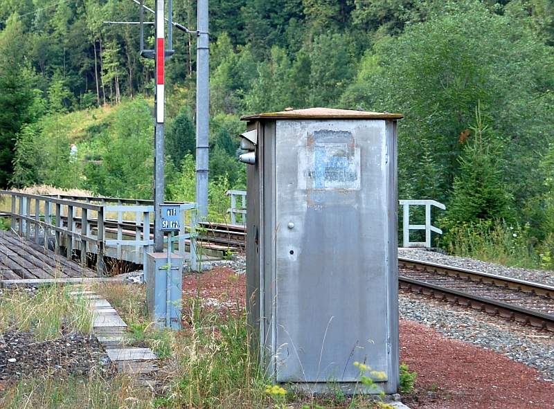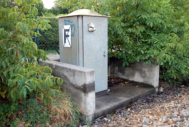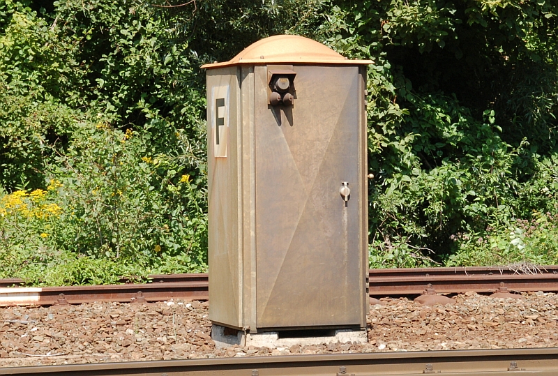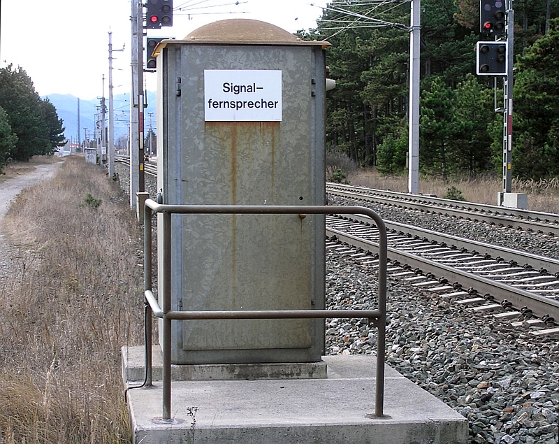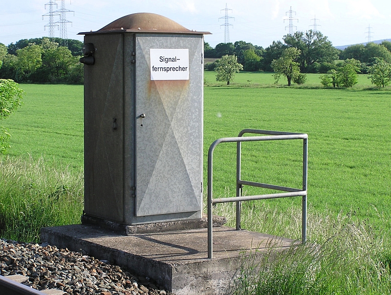 unmittelbarer Nähe vor den Hauptsignalen Signalfernsprecher. Das Gehäuse